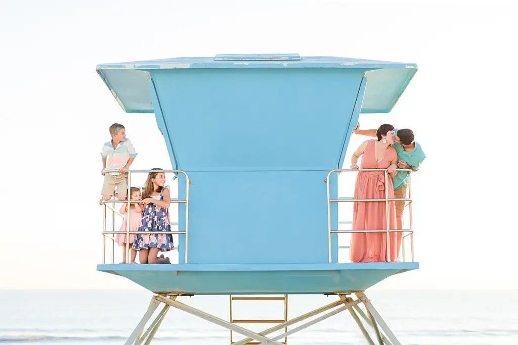 Our favorite image is the lifeguard tower image. The peek of backlit sunset, the contrasting blue and the amazing shot of our family . . . that shot is EVERYTHING!