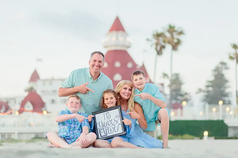 A. “The Del” is of course a paradise spot for tourists like us to the area. This particular trip we were celebrating our 15 year anniversary. As in all marriages, it has been a journey, and we’re extremely blessed to have made it this far. Our story has been enhanced by the additions of our three beautiful children along the way, and we could not be more happy to be able to celebrate this milestone anniversary in our favorite vacay spot!