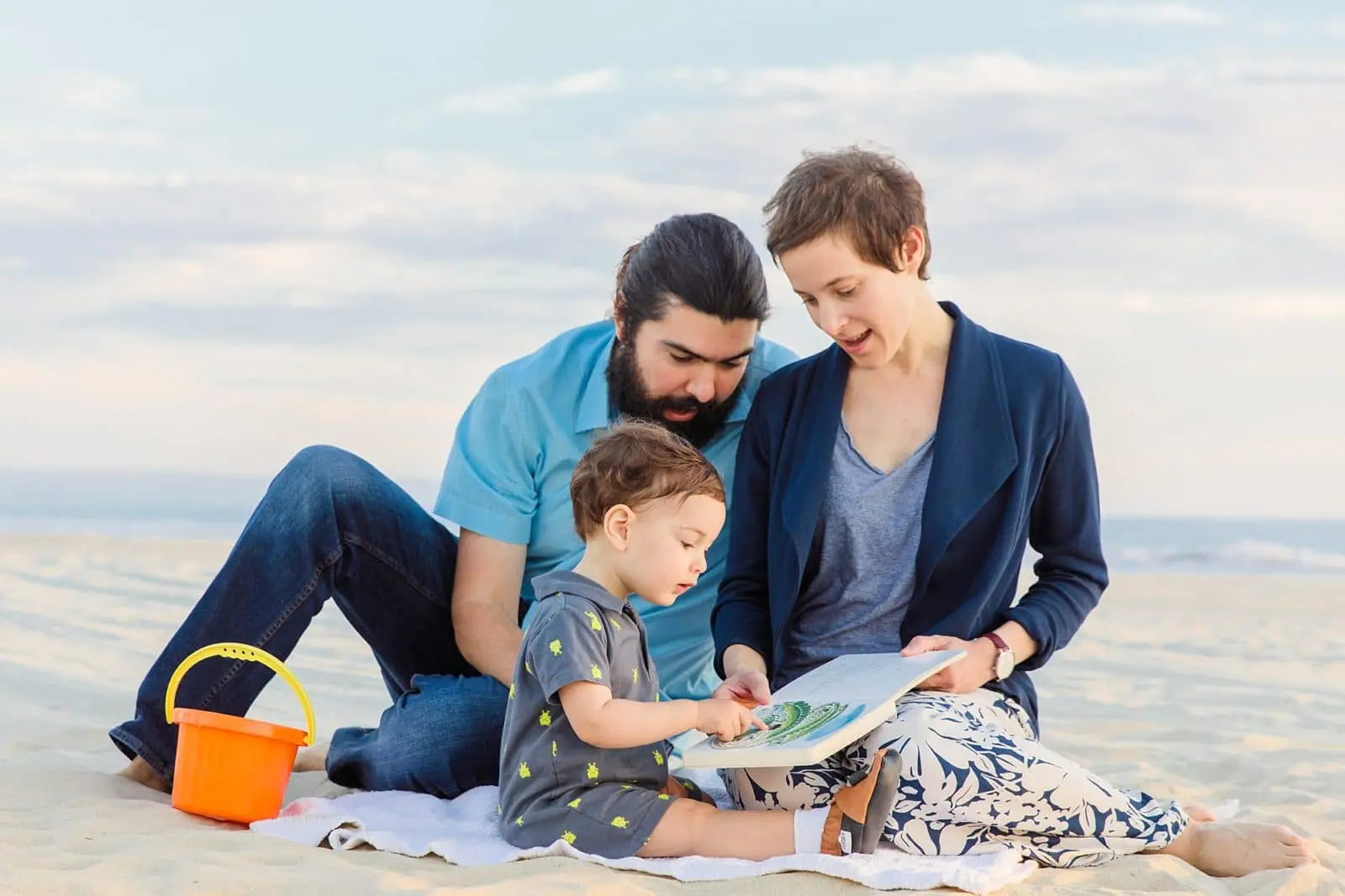 Well, this little one wasn’t so sure about family pictures until he discovered that it included story time! He was all about reading a book with Mom and Dad, and that paled only in comparison to his affection for the planes and helicopters flying over Coronado that night. What a sweet little boy. <3 Reading on the beach | San Diego Photographers