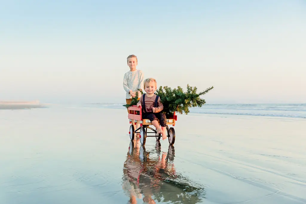 When Kerrie contacted me for Christmas photos, she knew just what she had in mind — her two little boys frolicking on the beach with red wagon and tree — and that’s just what we were able to accomplish, thanks to beautiful weather, happy boys, and that gorgeous flat shoreline on Coronado. Here are some of my favorites from her session: