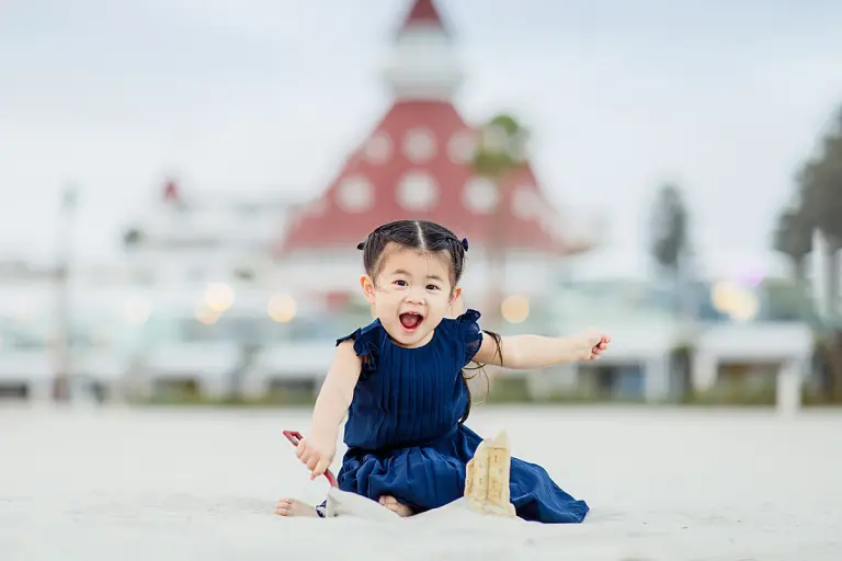 We were more than halfway into our session before she started to relax and have a little fun with pictures–and then came “Potty! I have to potty!” Of course she did…and of course the potty was a million steps away back in our hotel room. Her Dad has longer legs so he got the exercise of his life running up the beach trying to escort her there, but it was a fun moment that I’m sure all parents of toddlers can relate to!