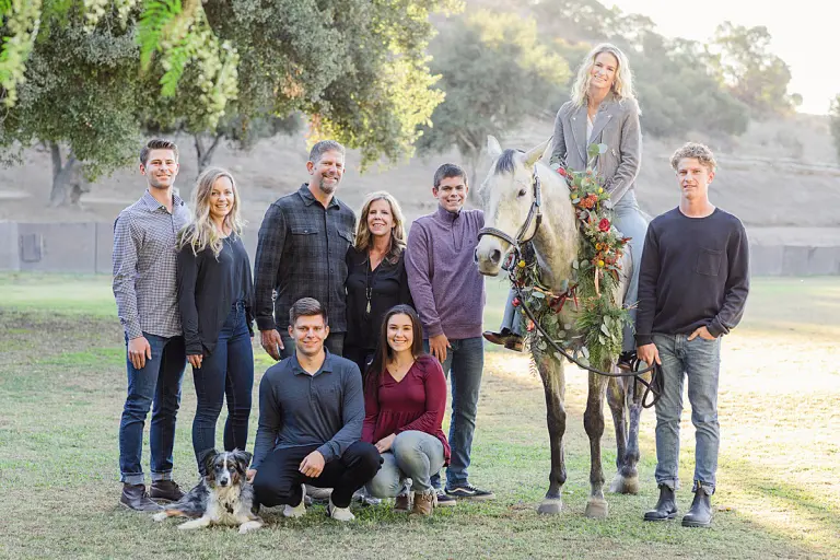The first time I photographed the Bankhead family was four years ago, and I immediately fell in love with their amazing property out in Lakeside. It has incredibly gorgeous light before sunset. Plus, there are horses! Here’s a flashback photo for moms who might wonder what happens in the four years after high school. Scroll down to see how this family has grown since 2016! In fact, one of their sons was recently engaged, so we did some horse-themed engagement portraits.
