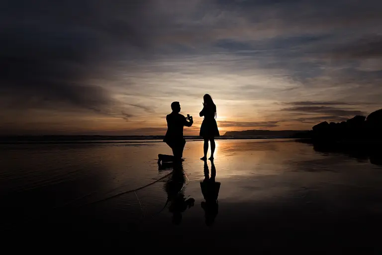I have a feeling that Ishita was a little suspicious about the evening’s events when she and Sarthak showed up at the Hotel del Coronado on Valentine’s Day for a couples photo session with me. They actually hit traffic on the way, and they ended up being pretty late. I was sweating it since “the sun waits for no man,” but Sarthak was unfazed. Instead of popping the question where I had suggested and convincing both Ishita AND me(!) that this was *not* the evening for the proposal, he found his own gorgeous spot on the water and dropped to his knee. I have never toggled my camera settings so quickly, but I am delighted with the way that pop-the-question image turned out! And the 40 minutes we had left offered PLENTY of time to do all of these fun poses and more, because they are both natural models! Check out Ishita’s story below and find out more about this couple: